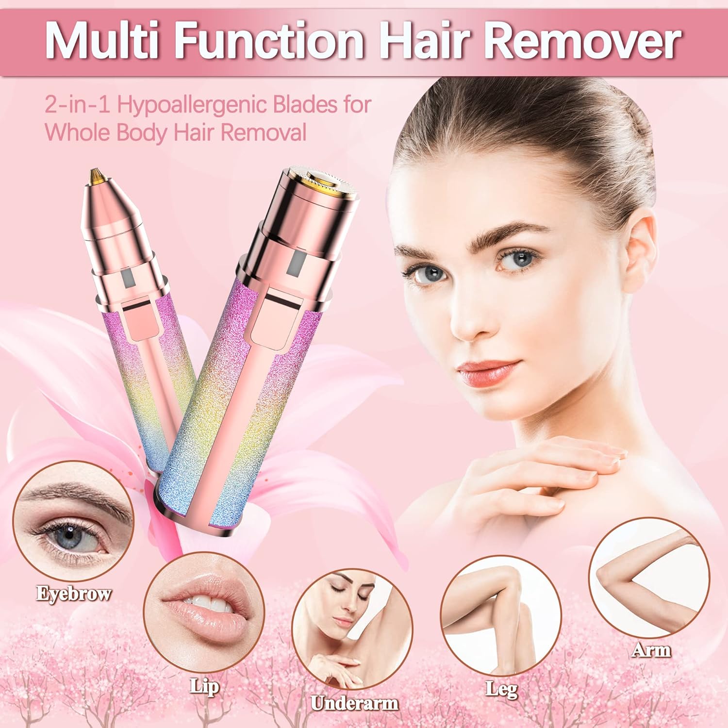 2-in-1 Design: Includes two heads for precise hair removal on eyebrows, upper lip, chin, cheeks, arms, fingers, and more.